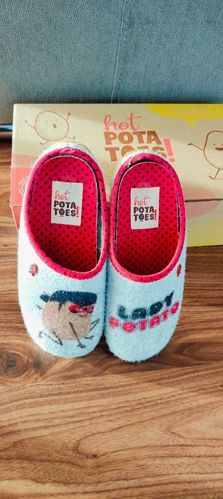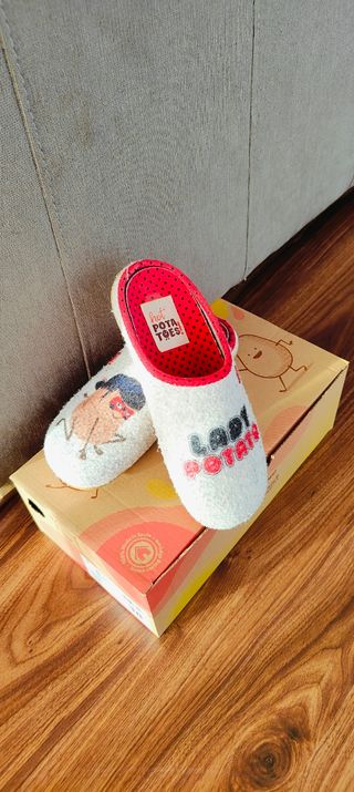 Chinelos de menina em muito bom estado com referência aos desenhos animados Ladybug.
