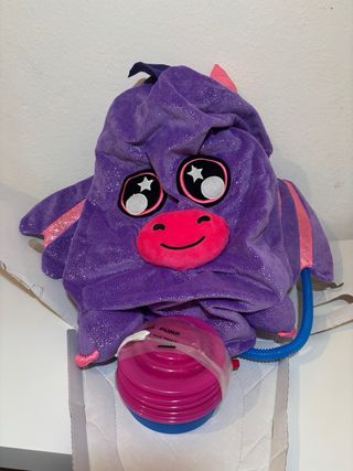 Peluche inflável Biggies tamanho XXL, modelo Dragão. - Cor: Roxo com glitter. - Inclui bomba para inflar. - Caixa foi aberta. - O peluche está novo, não foi usado.