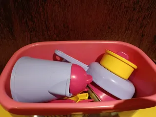 Conjunto de loiça infantil para brincar. Inclui vários acessórios para criar uma cozinha. - Inclui mais de 30 peças. - Cores vibrantes e design divertido. - Ideal para estimular a imaginação.