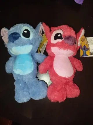 Conjunto de peluches de Stitch e Leroy, personajes de Disney. - Peluche azul de Stitch. - Peluche rosa de Leroy.