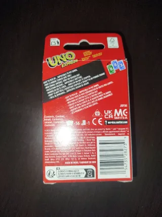Jogo de cartas UNO Express, perfeito para diversão em família. - Versão express do clássico UNO. - Ideal para 2 a 4 jogadores. - Inclui cartas numeradas e de ação.