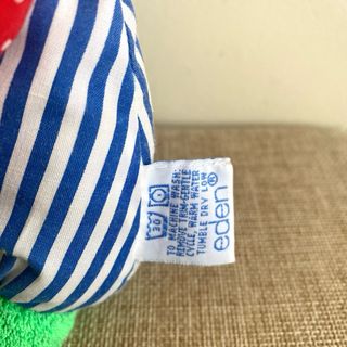 Boneco em tecido, macio e muito fofo, da marca Eden. - Vintage, década 1990 - Com argolas fixas coloridas que chocalham. - Tem 24 cm de altura - Lavável à máquina. 📦 Envio limpo, bem protegido e rápido.