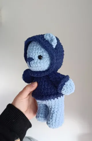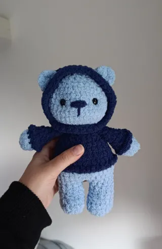 Ursinho feito à mão com linha pelúcia, extremamente macio e com acabamento caprichado. Mede cerca de 22 cm de altura, possui olhos com trava de segurança e vem com capuz removível, permitindo usar de duas formas. Uma peça versátil, marcante e perfeita tanto para presentear quanto para decorar. Artesanal, resistente e único. #amigurumi #ursinhoamigurumi #feitoamao #handmade #crochet #teddybear