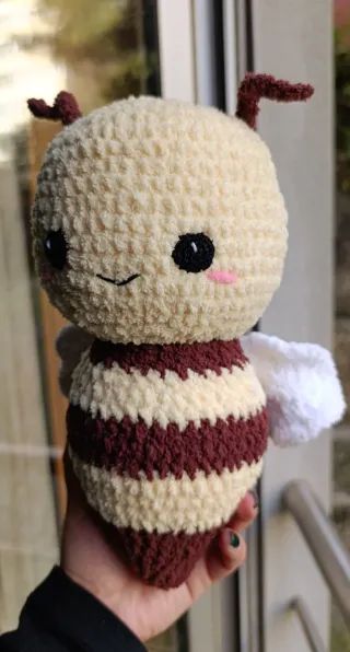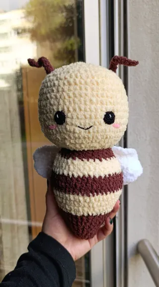 Esta abelhinha de amigurumi foi feita à mão com todo o carinho — perfeita para decorar e presentear. Feita com linha pelúcia super macia, antialérgico e olhos bordados, ela é segura, fofinha e super confortável ao toque. Tem aproximadamente 25 cm de altura, cheia de charme e prontinha para voar para a sua casa. #amigurumi #abelha #bee#crochet