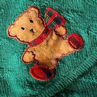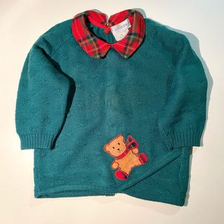 Camisola de malha para bebé com um adorável urso. Com algum uso, mas ainda em bom estado. Aperta atrás com botões. O ursinho e macio, com um acabamento tipo camurça.