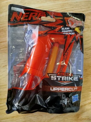 Lançador Nerf Alpha Strike Uppercut em embalagem original. - Cor laranja e amarela. - Inclui dardos.