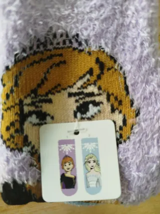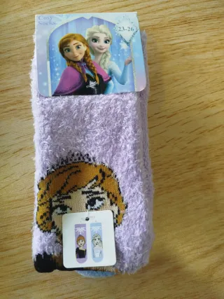 Conjunto de duas meias infantis com tema Frozen. São meias confortáveis e quentinhas. - Design com as personagens Anna e Elsa. - Tamanho 23-26. - Material macio e felpudo.