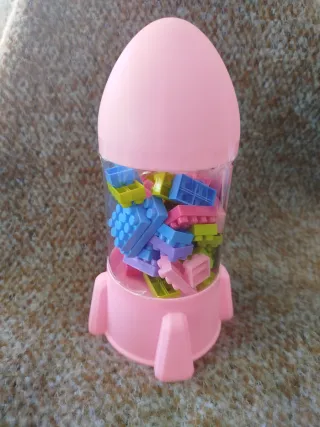 Conjunto de blocos de construção coloridos, perfeitos para estimular a criatividade. - Inclui blocos em tons de azul, roxo, verde e rosa. - Design divertido em formato de foguete. - Ideal para mãos pequenas.