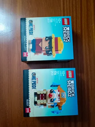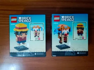 Conjunto de Lego Brickheadz da série One Piece, com as figuras de Monkey D. Luffy e Buggy the Clown. - Lego Brickheadz 40799: Monkey D. Luffy (136 peças) - Lego Brickheadz 40800: Buggy the Clown (176 peças) - Inspirado na série Netflix One Piece.