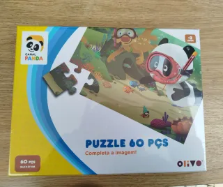 Puzzle infantil do Canal Panda com 60 peças. A imagem retrata uma cena subaquática com personagens. - 60 peças - Dimensões: 36,5 x 27 cm - Idade recomendada: +3 anos