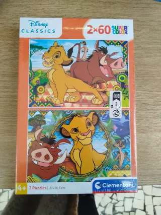 Conjunto de dois puzzles da Disney Classics com o tema O Rei Leão. Cada puzzle tem 60 peças e é ideal para crianças a partir dos 4 anos. - Inclui 2 puzzles de 60 peças cada. - Dimensões de cada puzzle montado: 27 x 18,5 cm. - Design Super Color para cores vibrantes.