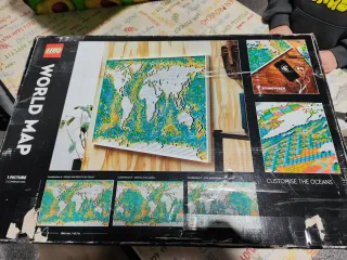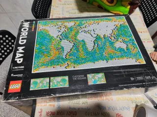 Vendo o espetacular set LEGO Art Mapa Mundo (31203). É uma peça de decoração incrível e um desafio de construção relaxante e gratificante. Estado: esta novo, nunca montado, a caixa sofreu danos com o antigo dono, abri para conferir se estava completo. As caixas na interior estão seladas. N.º de Peças: 11.695 peças. Dimensões: Mais de 65 cm de altura e 104 cm de largura. Características: Permite 3 combinações diferentes (escolha qual o continente que fica no centro).Oceano totalmente personalizável com padrões vibrantes.Inclui moldura em peças LEGO e ganchos para pendurar na parede. Acesso a uma banda sonora exclusiva. Porto