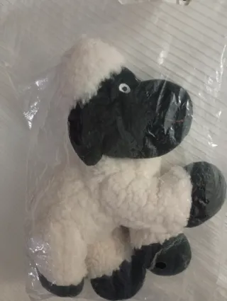 Pelúcia de ovelha com pelo branco e focinho preto. - Material macio e fofo. - Design adorável de ovelha.