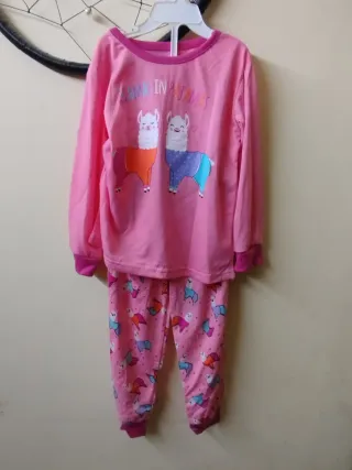 Conjunto de pijama para menina com estampa divertida de lhamas. - Cor principal: rosa. - Estampa de lhamas coloridas. - Manga comprida. - Calça comprida.
