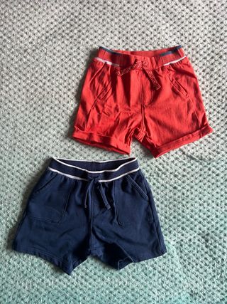 Conjunto de dois calções para menino da marca Mayoral. - Um calção em tom vermelho. - Um calção em tom azul marinho. - Cintura elástica com cordão para ajuste.