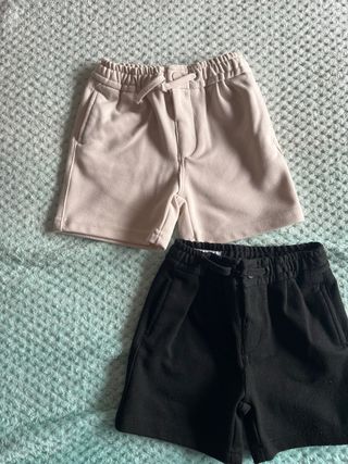 Conjunto de dois calções da Zara para menino. Um em bege e outro em preto. - Cintura elástica com cordão. - Bolsos laterais.