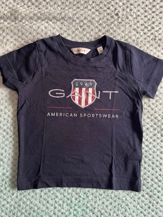 T-shirt azul da marca Gant com um design clássico. - Escudo frontal com o ano 1949. - Inscrição AMERICAN SPORTSWEAR abaixo do escudo.