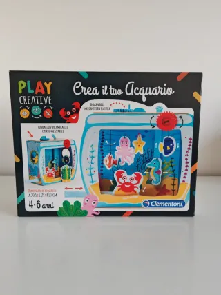 Jogo criativo Cria o teu Aquário da Clementoni. Permite criar um aquário com engrenagens mecânicas em plástico. - Fundos intercambiáveis e personalizáveis. - Dimensões do aquário: 20,5 x 25 x 10 cm. - Recomendado para idades de 4 a 6 anos.