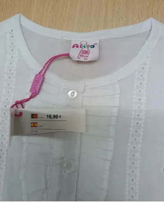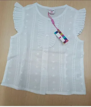 Blusa branca com detalhes em bordado e babados nas mangas. - Tamanho: 24/36 meses - Cor: Branca - Detalhes em bordado floral - Mangas com babados plissados - Fechamento frontal com botões