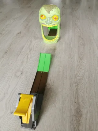 Conjunto de pista de carros para crianças, com um lançador e um obstáculo temático de zumbi. - Pista com duas vias