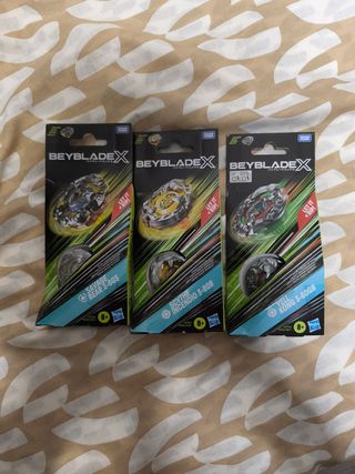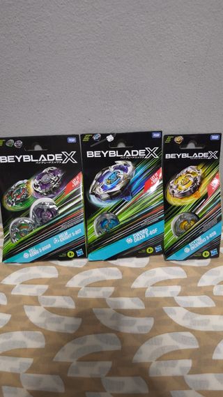Lote de Beyblade X, incluye 3 Beyblades. - Yell Kong 3-60GB - Helm Knight 5-80T - Scythe Incendia 3-80B