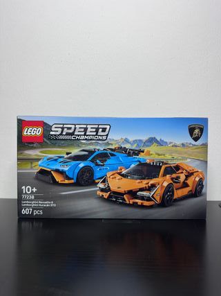 Conjunto LEGO Speed Champions 77238 | Lamborghini Revuelto e Huracán STO com os modelos Lamborghini Revuelto e Lamborghini Huracán STO. Inclui 607 peças. - Modelo: 77238 - Idade recomendada: 10+ - Peças: 607