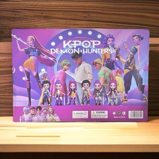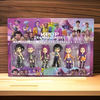 Conjunto de figuras colecionáveis K-Pop Demon Hunters. As figuras apresentam designs vibrantes e detalhes inspirados na cultura K-Pop. - Inclui 6 figuras. - Embalagem original. - Personagens com trajes temáticos.