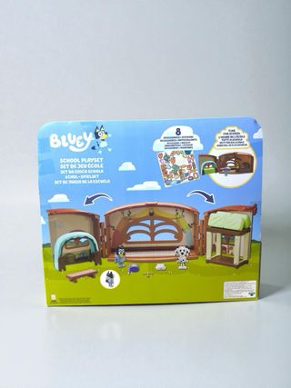 Conjunto de escola Calypso's School Playset da Bluey. Inclui 10 peças. - Figuras de personagens Bluey. - Cenário de escola. - Acessórios para brincar.