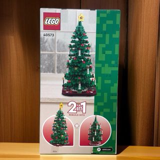 Conjunto LEGO da Árvore de Natal. - Peças para montar uma árvore festiva. - Inclui decorações como bolas vermelhas e velas. - Finaliza com uma estrela dourada no topo.