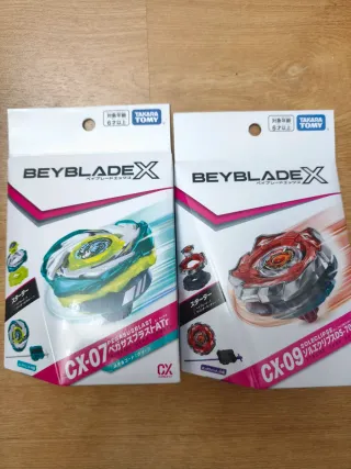 Conjunto de 5 Beyblades da linha X. - Inclui os modelos: CX, Shelter Drake 7-80GP, Rock Golem 1-60UN e mais dois. - Ideal para colecionadores e fãs da série.