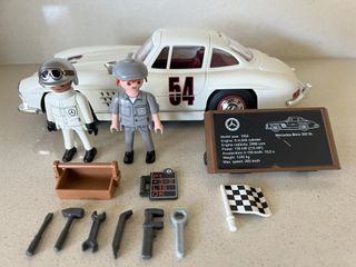 Réplica do icónico Mercedes-Benz 300 SL da Playmobil. - Carroçaria branca com detalhes vermelhos. - Número 54 em destaque nas laterais. - Inclui embalagem original.