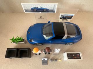 Conjunto Playmobil do Porsche 911 Targa 4S. - Inclui duas figuras. - Inclui um carro desportivo azul. - Inclui acessórios como um portátil e um bidão de óleo. Nota: SET completo sem caixa original e sem instruções