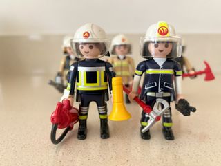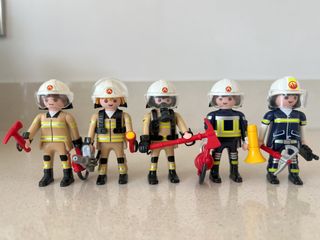 Conjunto de 5 figuras de bombeiros Playmobil. Nota: set completo Playmobil 6584 (Firefighter Group A) + 2 bombeiros adicionais. Sem caixa original - Inclui 5 figuras de bombeiros. - Detalhes autênticos dos uniformes.