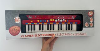 Teclado eletrónico da Simba, ideal para crianças a partir dos 3 anos. Possui um design divertido e colorido. Na caixa, praticamente novo. Usado muito poucas vezes! - Teclado com teclas pretas e brancas. - Botões coloridos para diferentes funções. - Pilhas não incluídas