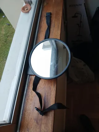 Espelho para carro que permite ver o bebé no banco de trás. É fácil de instalar e ajustar. - Material: Plástico e fita de nylon. - Cor: Preto.