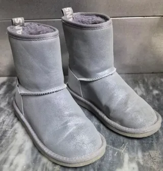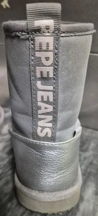Botas de inverno para criança da marca Pepe Jeans, tamanho 33. Cor cinza com interior em pelo. - Tamanho: 33 - Cor: Cinza - Material exterior: Camurça - Interior: Pelo sintético - Detalhe: Tira com logo na parte superior