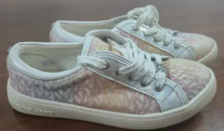 Sapatilhas da marca Michael Kors em tamanho 33. - Design moderno com detalhes em preto. - Fecho com atacadores brancos. - Logo MK em destaque na lateral.