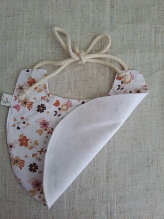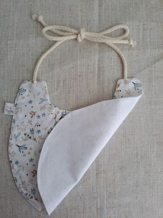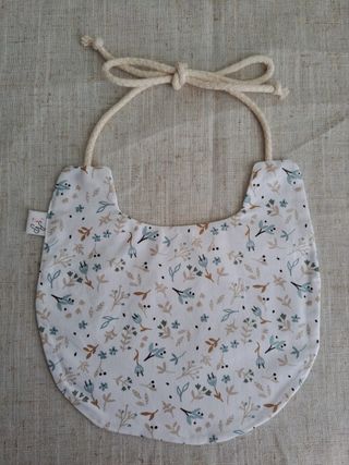 Babete 100% algodão, novo a estrear. Tamanho- 0 a 12 meses - Padrão floral e de folhas. - Fecho ajustável com cordão. - Tecido macio e confortável. Feito por mim. A minha marca é Agulha no Palheiro ✨