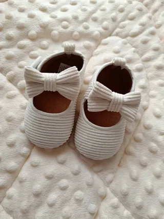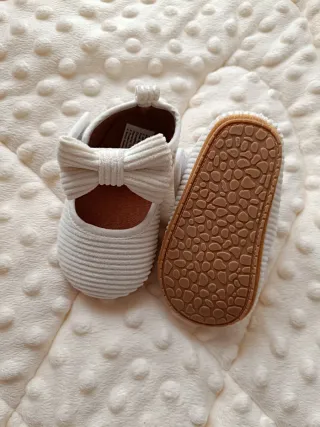 Sabrinas adoráveis para bebé, perfeitas para ocasiões especiais ou para o dia a dia. - Design com laço. - Material macio e confortável. - Cor branca Novos nunca usados. Calçam um tamanho 18/19
