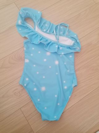 Fato de banho para menina entre os 4-6 anos com unicórnio na frente. Muito bom estado. Azul claro.