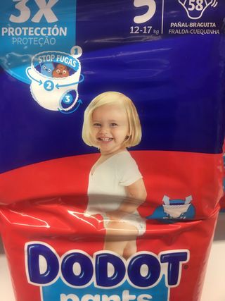Fraldas Dodot Pants, tamanho 58, para 12-17 kg. - Proteção e conforto para o bebé. - Design tipo cuequinha para facilitar o uso. - Indicadas para crianças entre 12 e 17 kg.