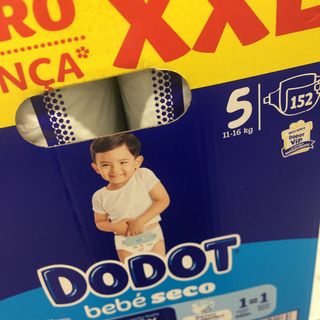 Lote de fraldas Dodot tamanho 5 XXL. - Indicadas para pesos entre 11 e 16 kg. - Embalagem com 152 unidades.