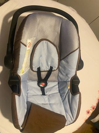 Cadeira auto da marca Hauck, com um design moderno e confortável. - Cor azul e castanho. - Alça de transporte. - Cinto de segurança de 5 pontos.