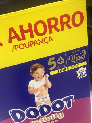 Pack de 117 fraldas Dodot Activity, tamanho 6. - Indicadas para crianças entre 14 e 19 kg. - Absorção extra. - Desenho com personagens.