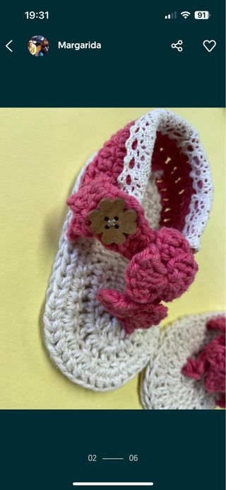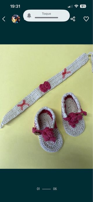 Conjunto de Sandália de bebé mais a fita feito para cabelo em croche feito á mão, novo. Temos outros conjuntos com outras combinações.
