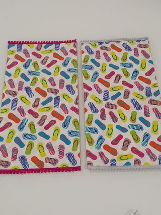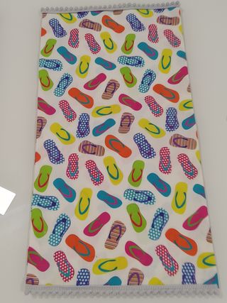 Dòs toallas de playa para jugar com las muñecas. Talla 39 cm * 20,5 cm. Muy monas. Fabrico artesanal. Las fotos también hacem parte decla descripciòn.