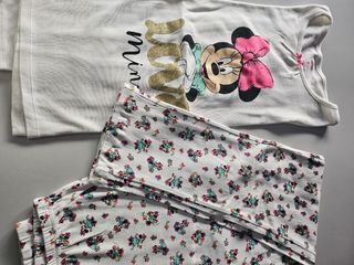 Conjunto de pijama com pantufas, completamente novo, sem usar, da marca MO, decorado com a Minnie. O pijama é tamanho 13/14 anos e as pantufas são o tamanho 35/36. As pantufas mantêm a etiqueta. As fotografias também fazem parte da descrição.