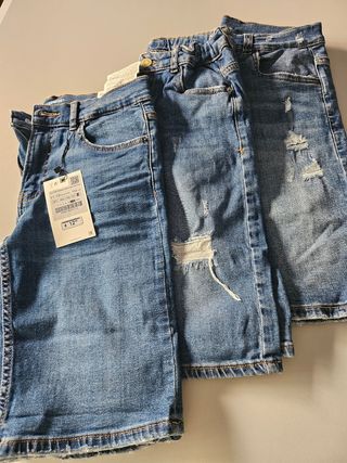 Três pares de calções de ganga para rapaz, tamanho 11/12 anos, da marca Zara. Um par ainda mantém a etiqueta. Estão como novos. As fotografias também fazem parte da descrição.