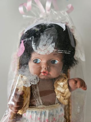 Muñeca antigua, en su cuna, nueva en su embalage. Perfecta para regalo. Las fotos también hacen parte de la descriciòn.
