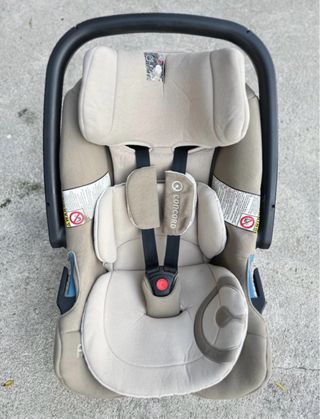 Cadeira automóvel Concord Air.Safe com base Isofix. - Cor bege e cinza. - Inclui arnês de segurança de 5 pontos. - Alça de transporte ajustável.